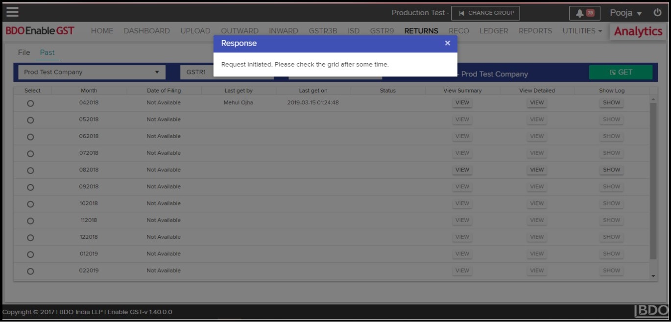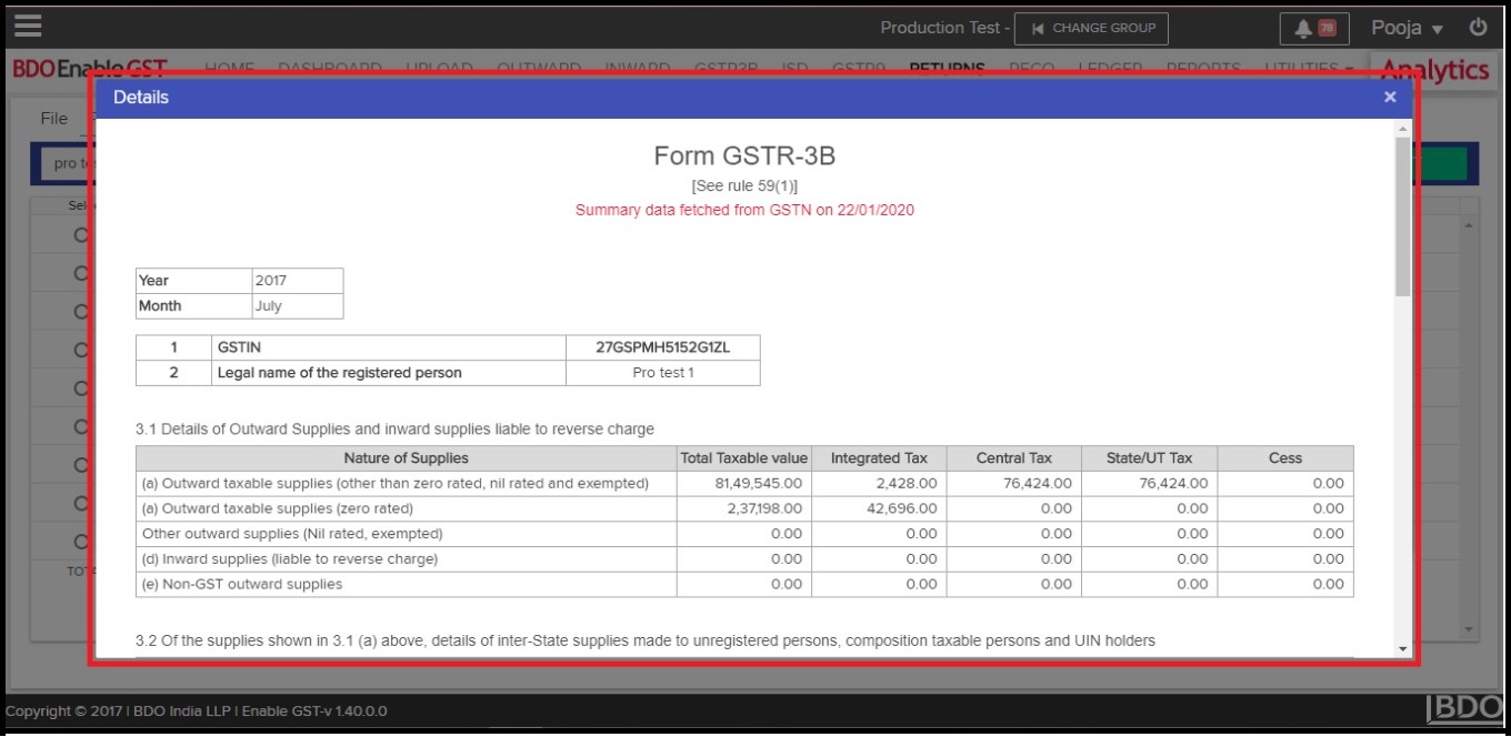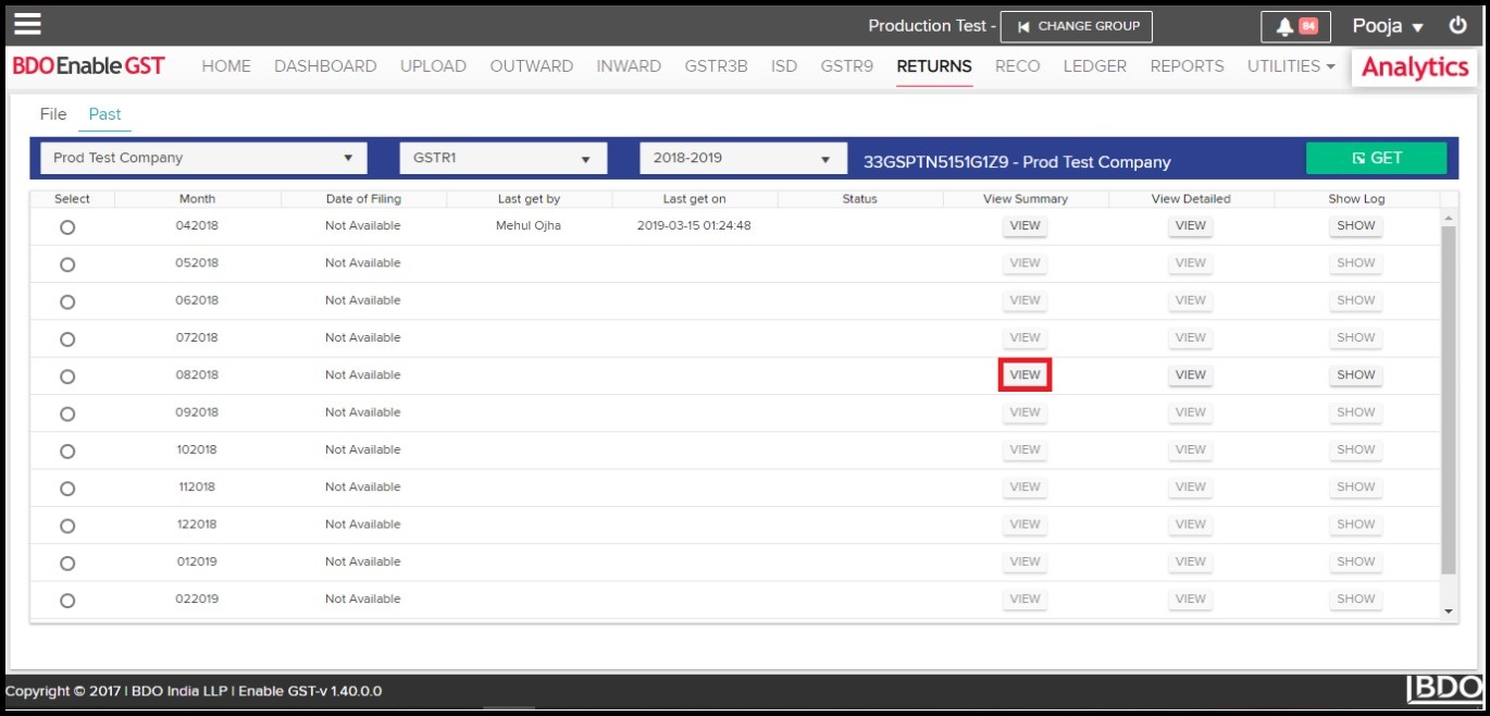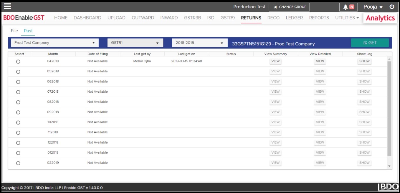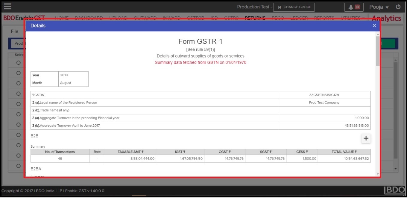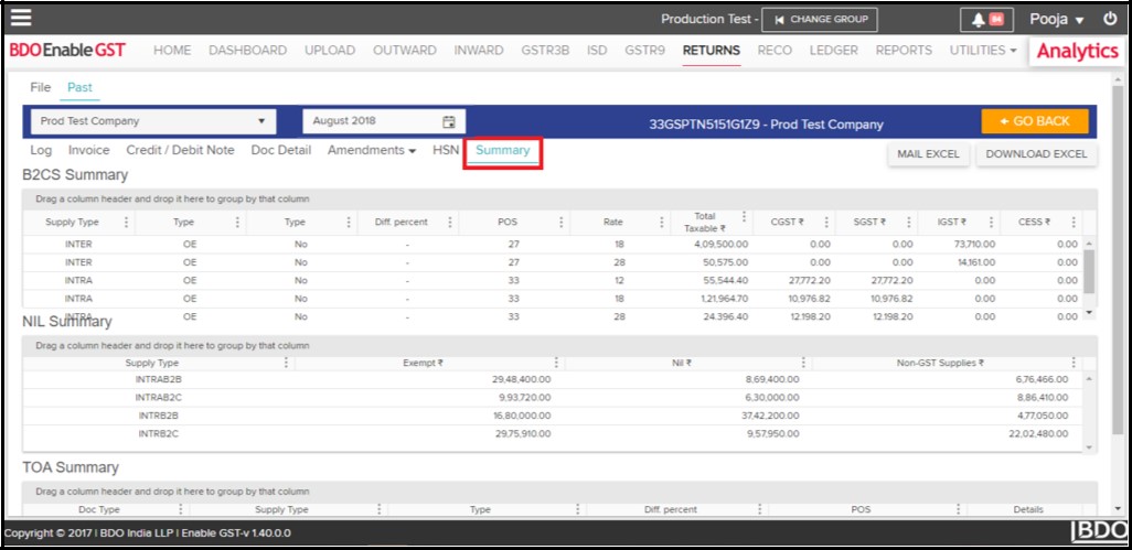 - Data fetched from GSTN can be viewed & downloaded in the summary form.