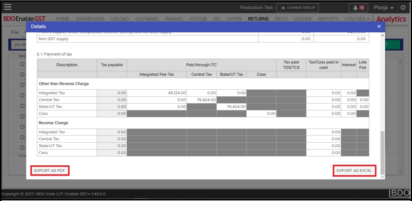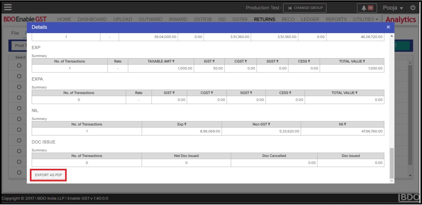 - User can download return summary by clicking on “Export As PDF” button.