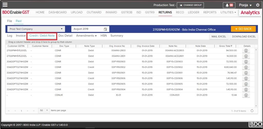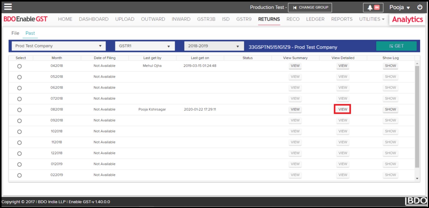 - Data fetched from GSTN can be viewed & downloaded in the form of summary as well as at the detailed level.