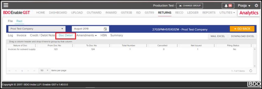 - Doc Detail: All Document details shall be visible in this section.