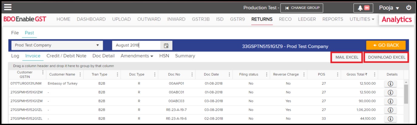 - Invoices: All B2B, B2CL & Export records shall be visible in this section.