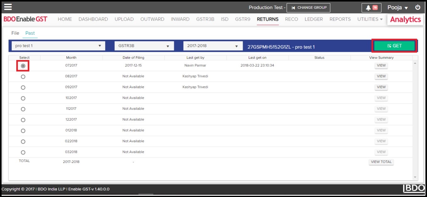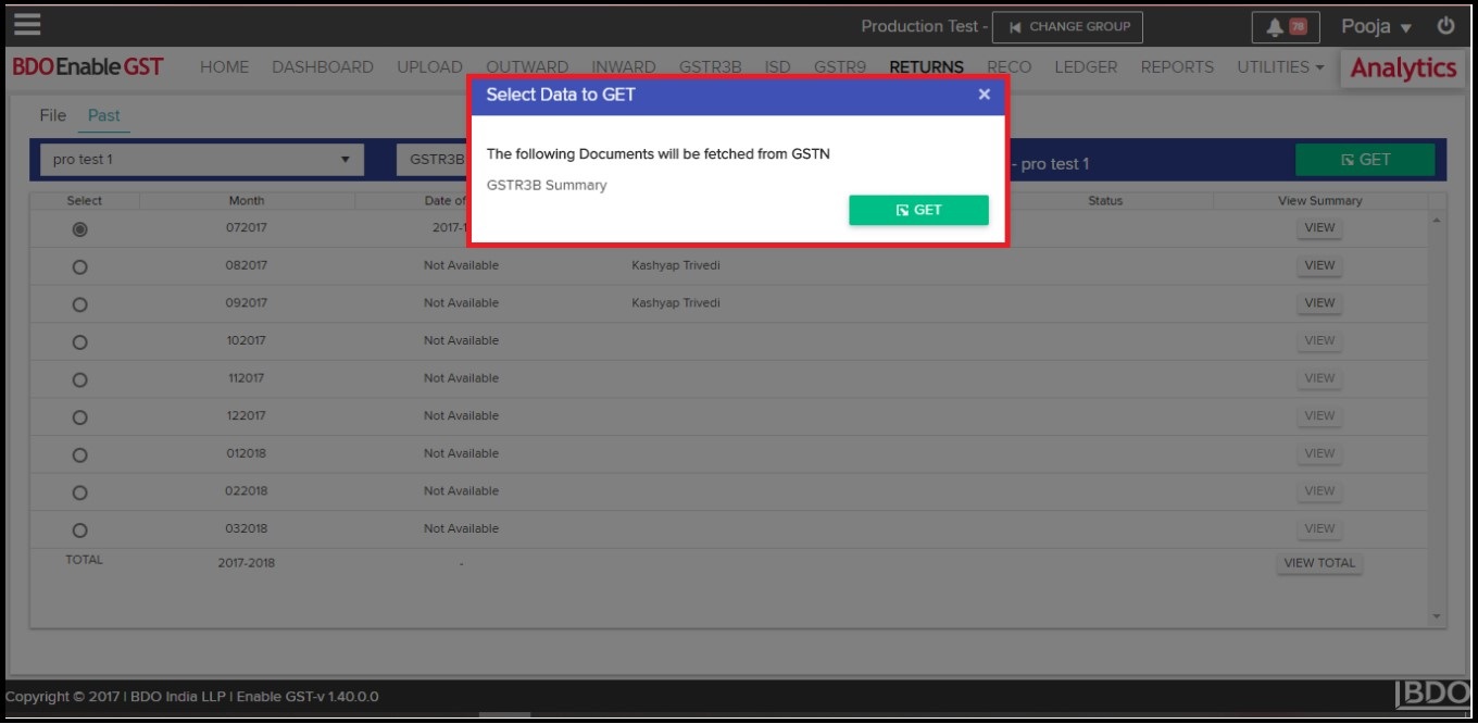 - Once you select respective month then “GET” button will be activated. Click on “Get”, you shall get pop-up mentioning “Select Data To GET”. Click on the “Summary” check box & than click on GET.