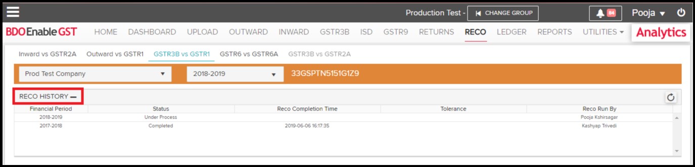 - While performing Reco it will show status in Reco History whether it is (Under Process/ Completed/ Failed).